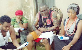 He gets that of a snake, star, moon, fire and other things on the set of a new movie.John Paul Nwadike, Princess Okah, Dave Ogbeni and others were also onset for this upcoming movie.